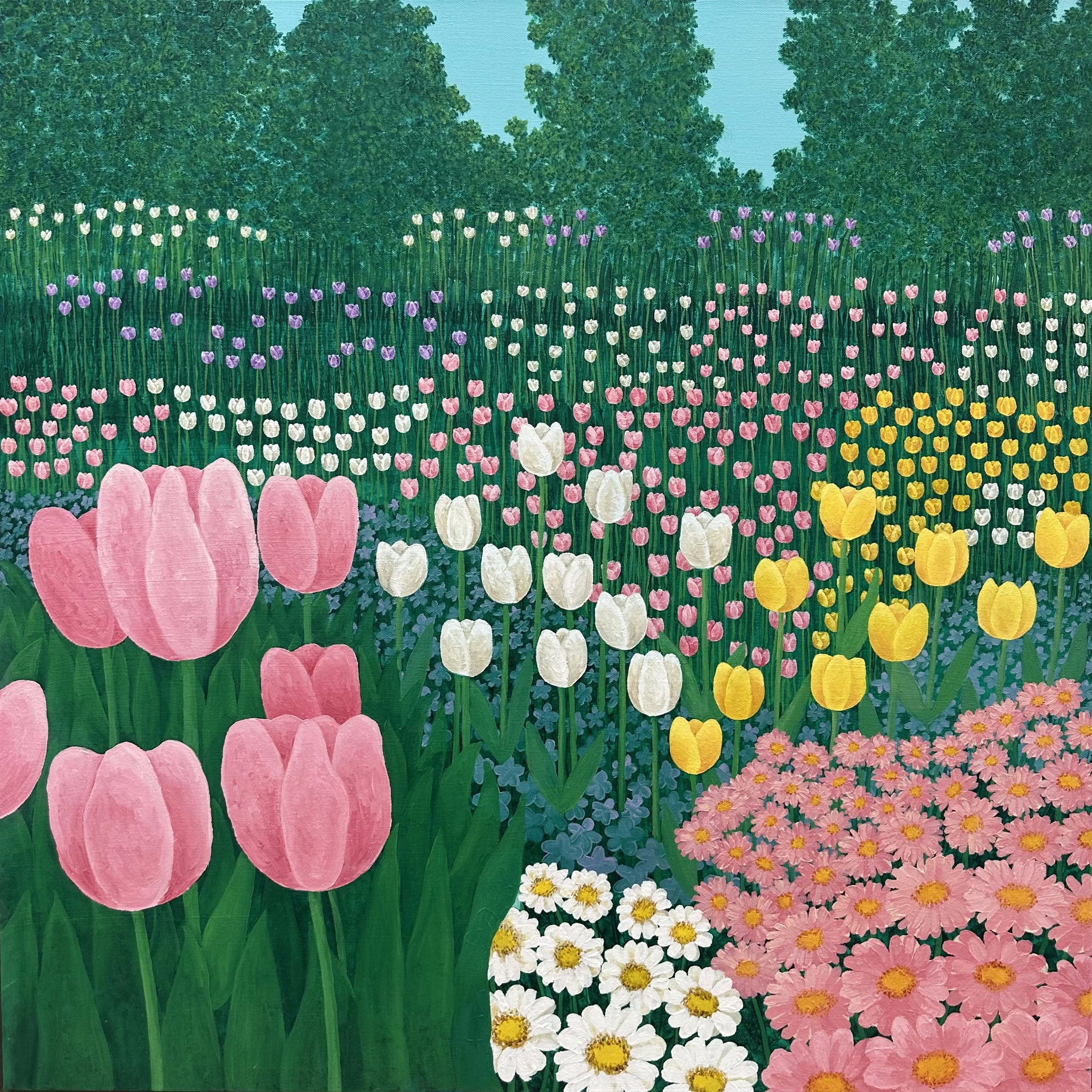 Many of the works capture the landscapes and colours of Floriade, offering a Floriade-inspired experience beyond the park itself. Here, on canvas, the feelings of wonder, renewal, and joy associated with spring are reimagined—petal after painted petal.